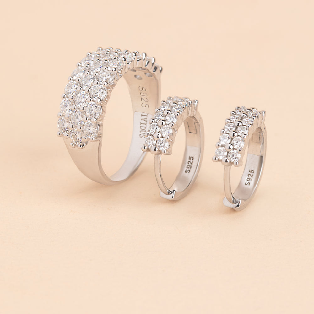بإجمالي وزن 0.76 قيراط، توفر هذه الأقراط التوازن المثالي بين الأناقة الرقيقة والحضور القوي. صُنعت ببراعة من الفضة الإسترلينية (925) المطلية بـ الروديوم الفاخر، لتعطيكِ ذلك اللمعان البلاتيني الساحر الذي يقاوم الزمن، مما يجعلها القطعة التي لا غنى عنها في خزانة مجوهراتكِ، سواء لإطلالة عمل واثقة أو لسهرة عصرية ممتعة.