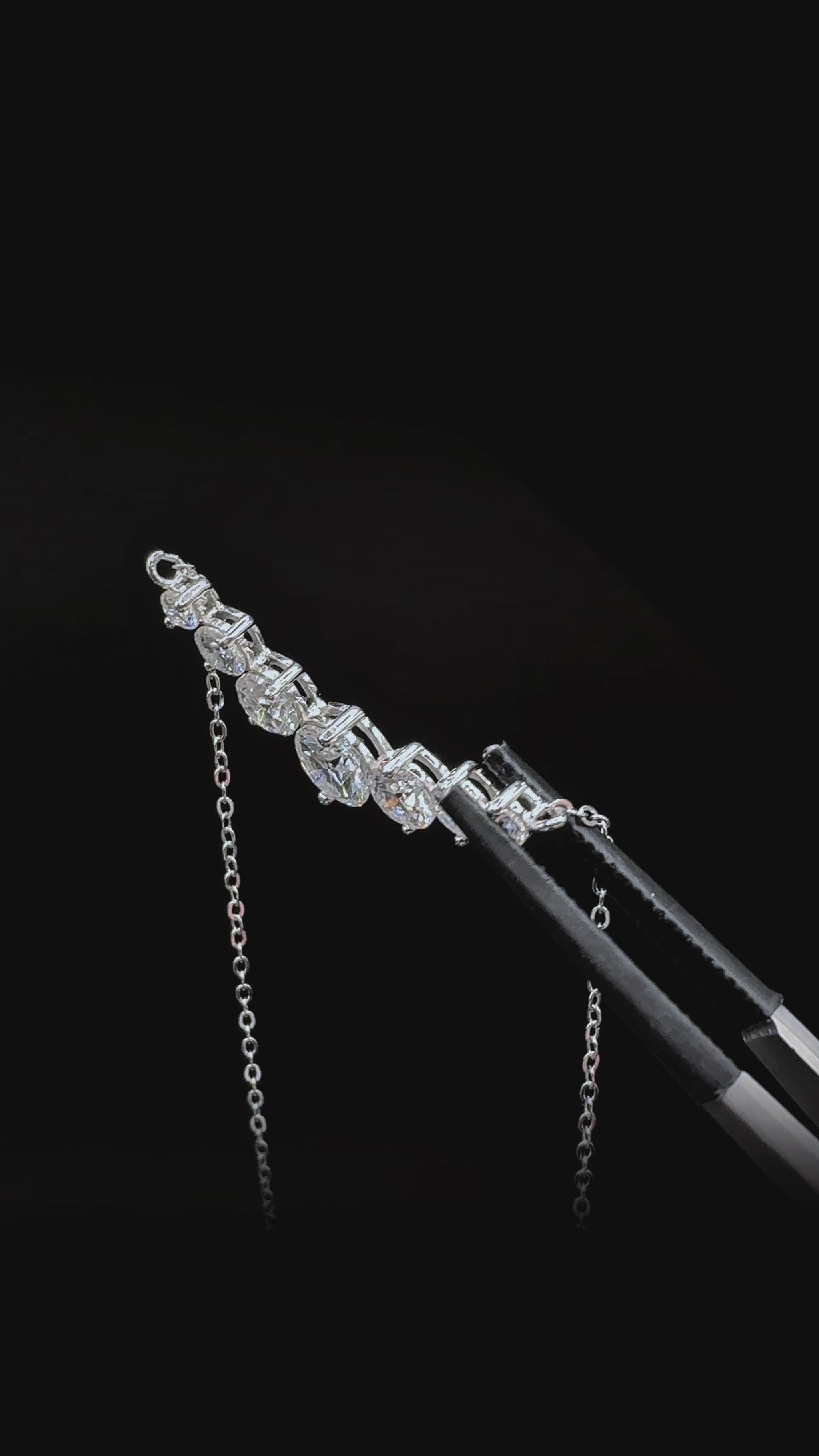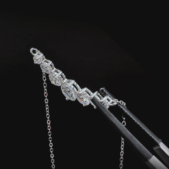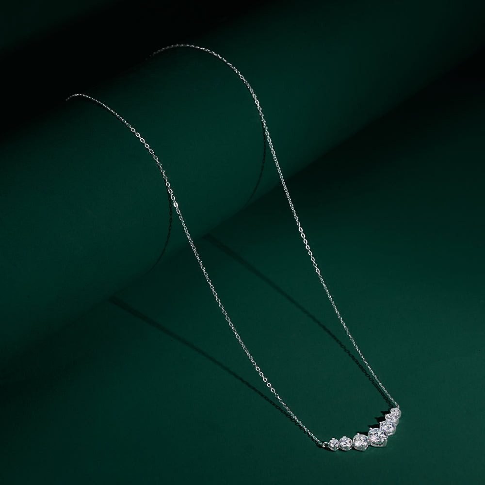 تألقي بجاذبية استثنائية مع قلادة "كوينزفيري"، القطعة التي صُممت لتسليط كل الأضواء عليكِ. تتميز هذه القلادة بسبعة أحجار مويسانيت فاخرة، مرتبة بدقة متناهية على شكل قوس انسيابي يتبع خط العنق برشاقة، مما يخلق عرضاً بصرياً مذهلاً لبريق الـ 2.8 قيراط.