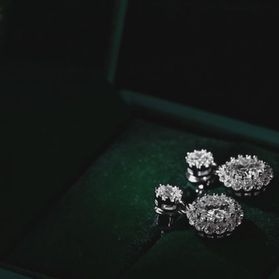 These Round Cut Drop Moissanite Earrings pair timeless elegance with radiant brilliance. Featuring two perfectly matched round brilliant-cut moissanite stones, each encircled by a shimmering halo, the design enhances sparkle and adds luxurious depth. The lower focal stone measures 1 carat, creating a refined yet eye-catching drop silhouette that moves beautifully with every turn. Expertly crafted in 925 sterling silver and finished with premium rhodium, these earrings offer lasting durability, exceptional shine, and a sophisticated high-end finish — a stunning choice for both special occasions and elevated everyday wear.
