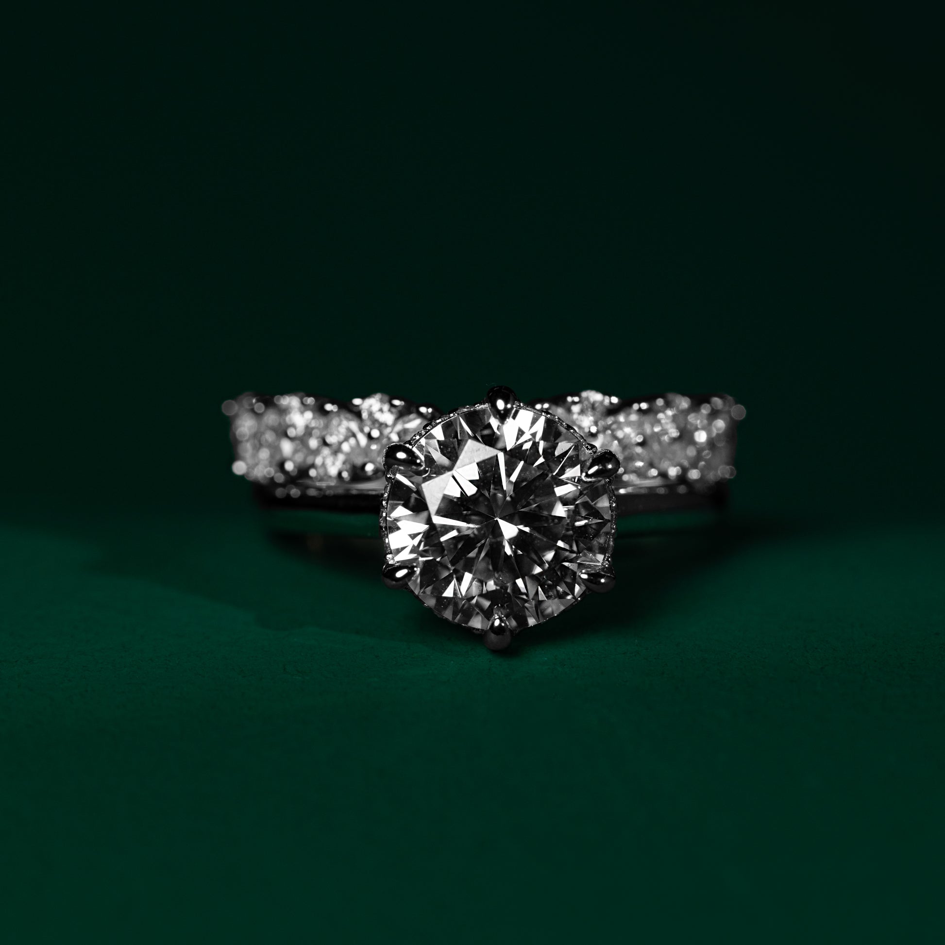 - Wedding band: 8 brilliant cut moissanites set along the band