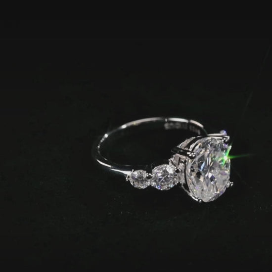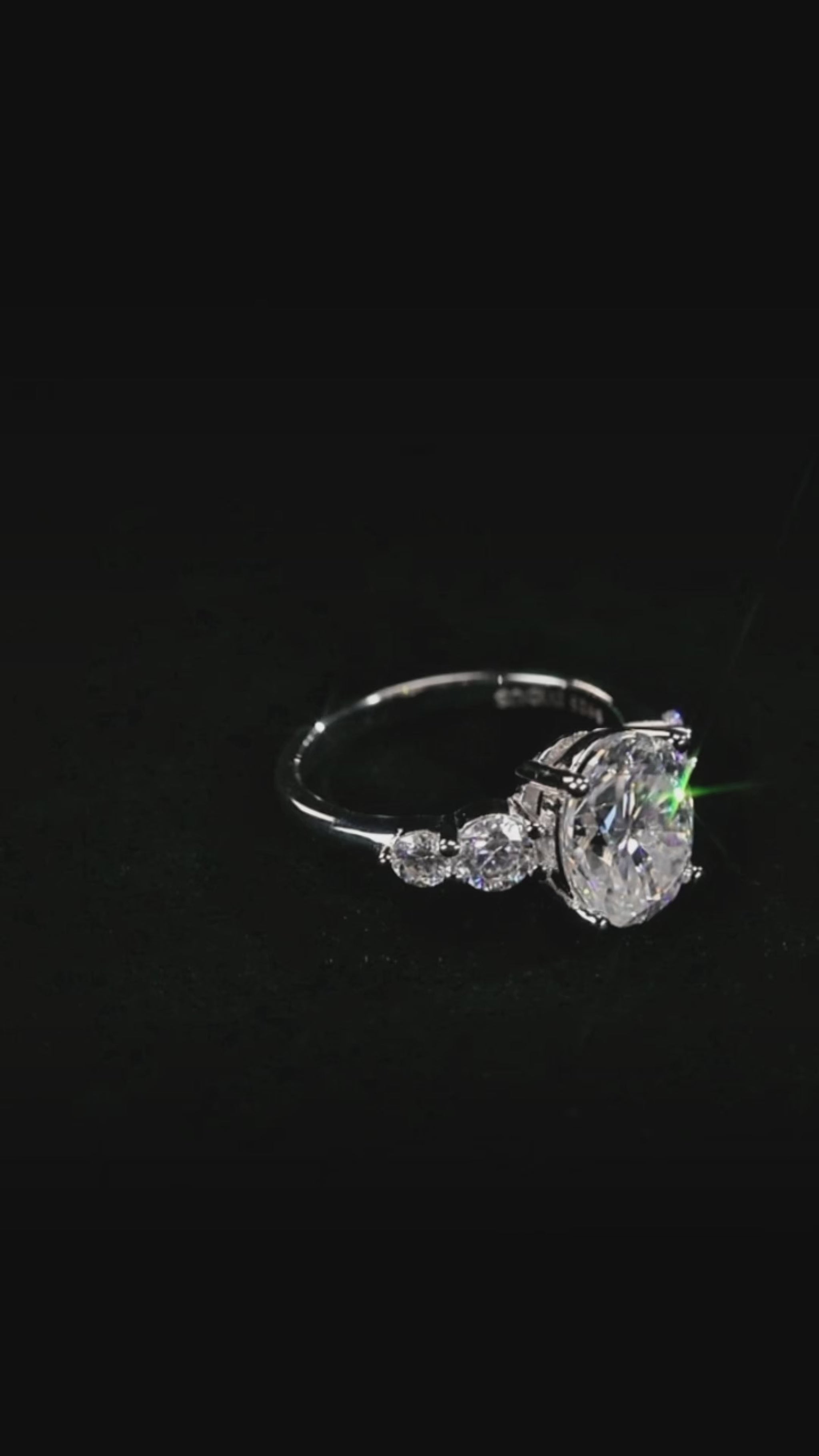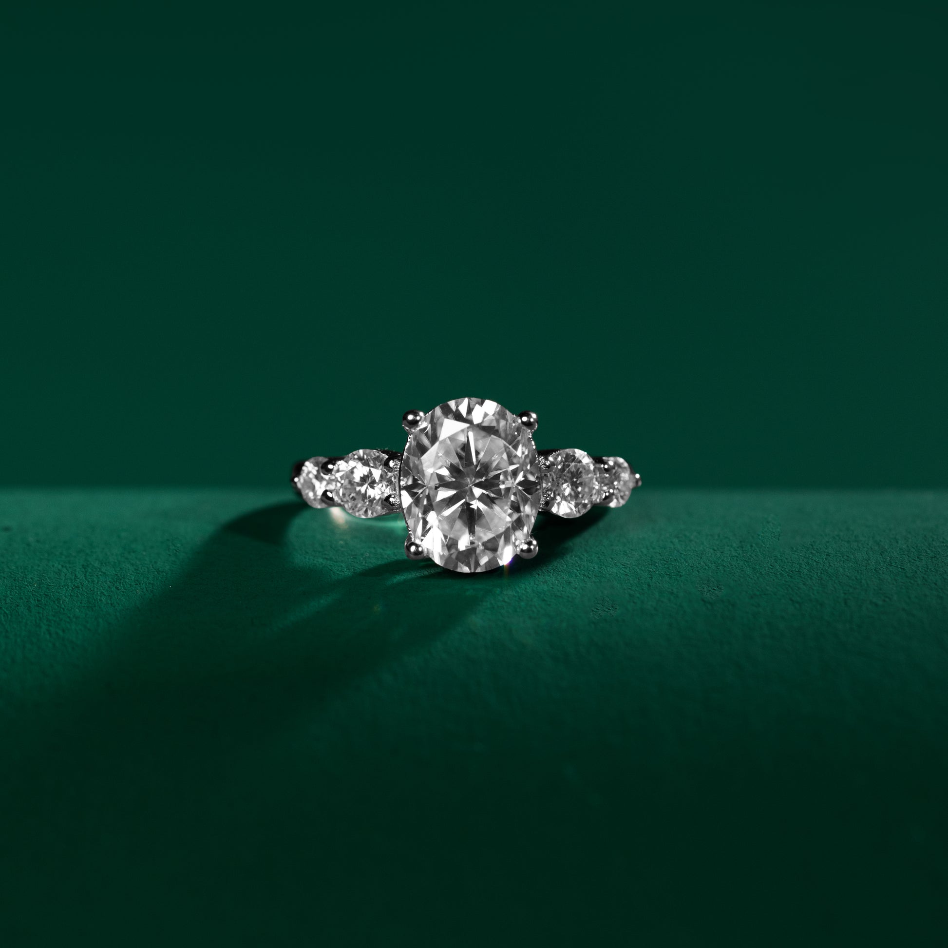This 3-Carat Oval-Cut Moissanite Ring pairs timeless design with graceful brilliance. The elongated oval center stone is enhanced by two round brilliant-cut moissanites on each side, creating a balanced three-stone silhouette that symbolizes past, present, and future. Together, the stones deliver exceptional sparkle from every angle while maintaining an elegant, refined profile. Expertly crafted in 925 sterling silver with premium rhodium and 18K white gold plating, this ring offers lasting shine, durability, and a luxurious finish — perfect as a meaningful gift or standout statement piece.